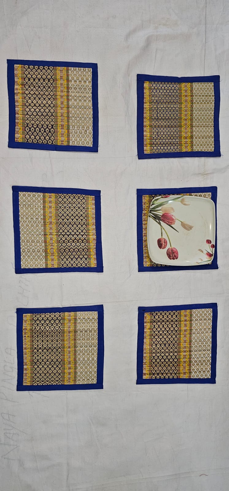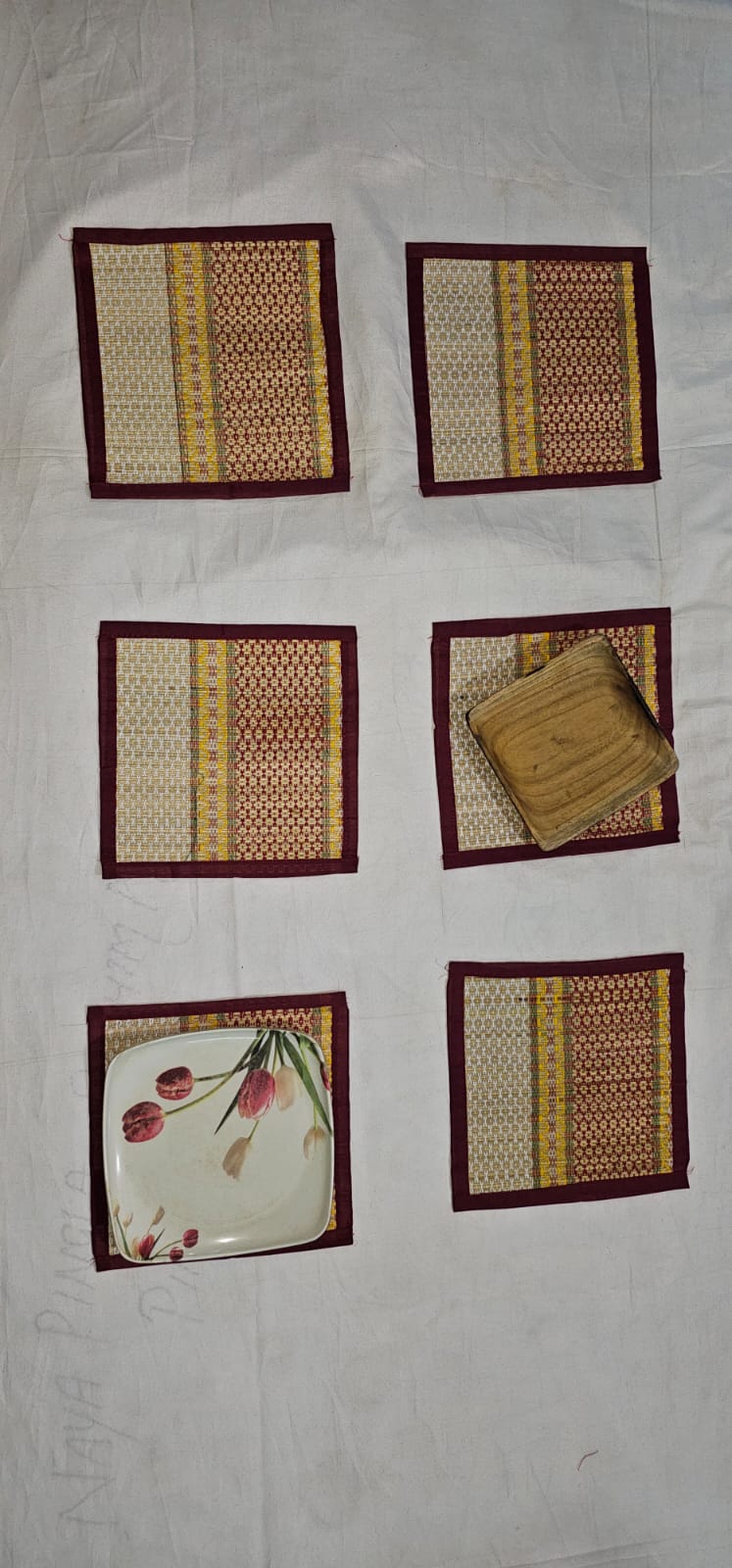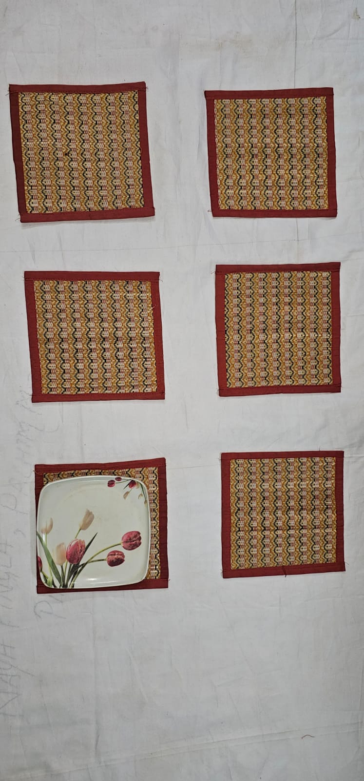 9inch X 9 inch table mat(set of 6) (heat register). Or you can used it for small size plate.